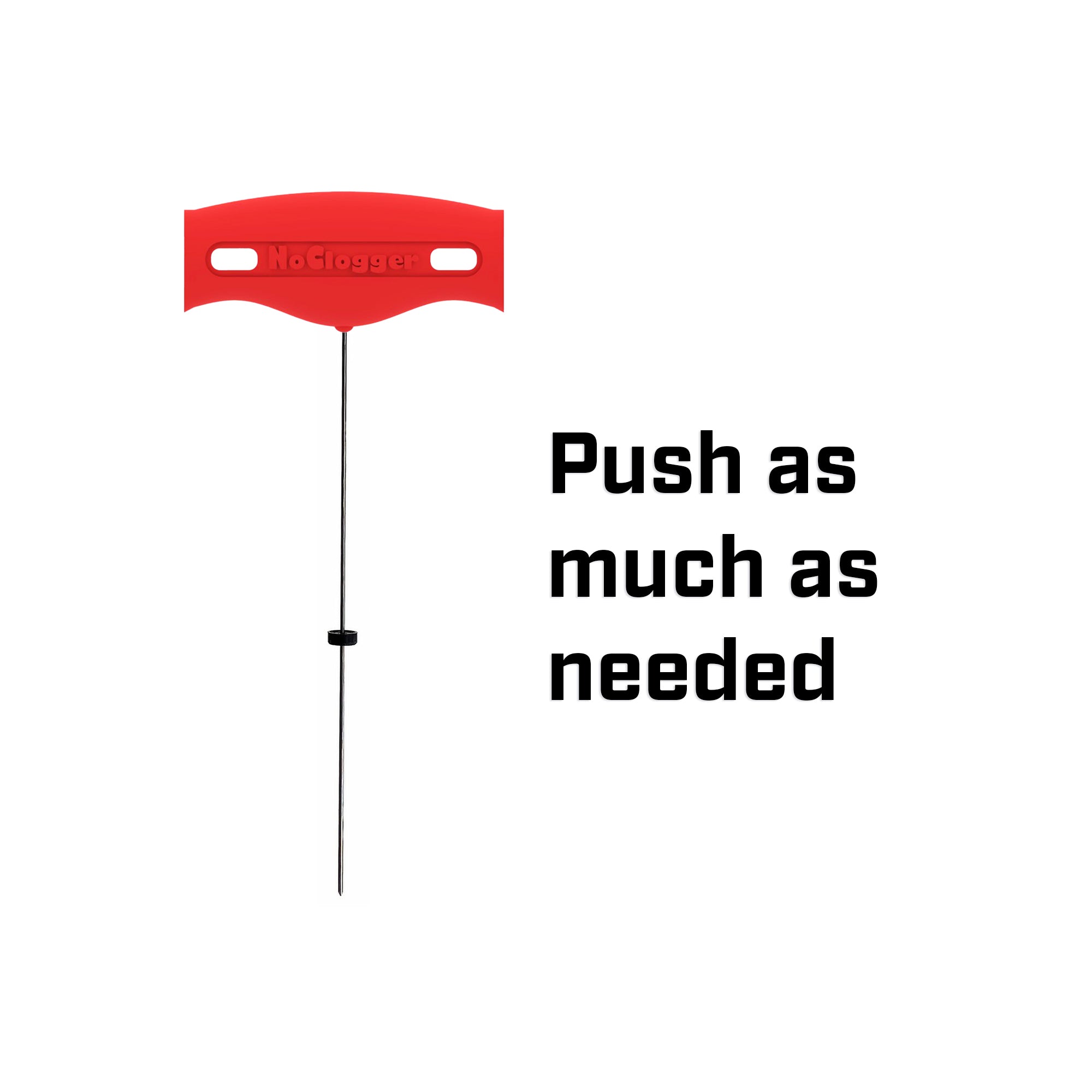 The NoClogger has a movable indicator on the shaft that helps prevent the use of excessive force.